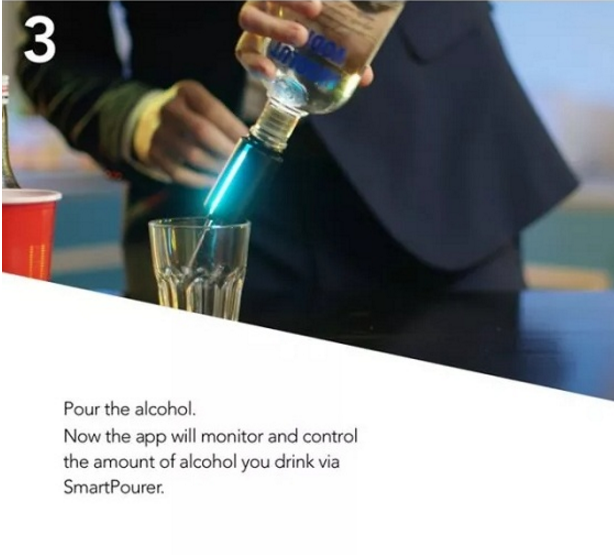SmartPourer عبارة عن غطاء ذكي لزجاجة النبيذ يحل محل غطاء الزجاجة، ويأتي معه علبة لتتبع والتحكم في كمية الكحول التي تتناولها.