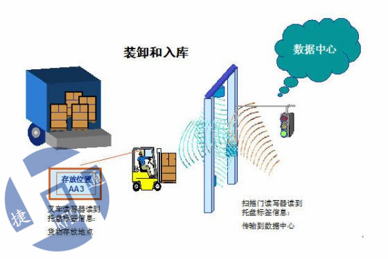 يقرأ الجهاز المخصص لليد بطاقة إلكترونية بتقنية RFIDيتم تحميل المعلومات في الوقت الفعلي إلى النظام الخلفي عبر شبكة الاتصالات المتنقلة لتحقيق هدف تقليل المخزون وزيادة دوران المنتج. وفي حال عدم الحاجة إلى تحديث البيانات، يتم تقليل تكلفة نقلها.