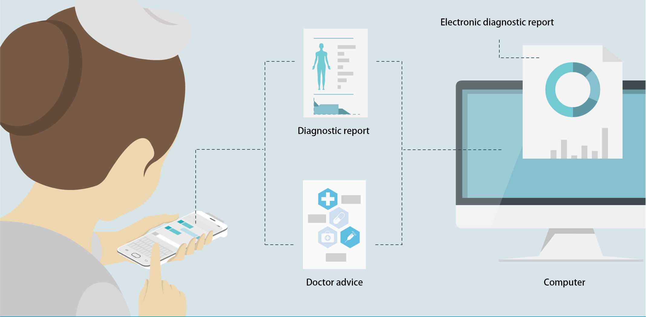 يستطيع الطبيب دمج معلومات المريض من خلال الشبكة، وعرض نتائج الاختبارات النموذجية، ووضع تشخيص وخطة علاج مناسبة في الوقت المناسب.