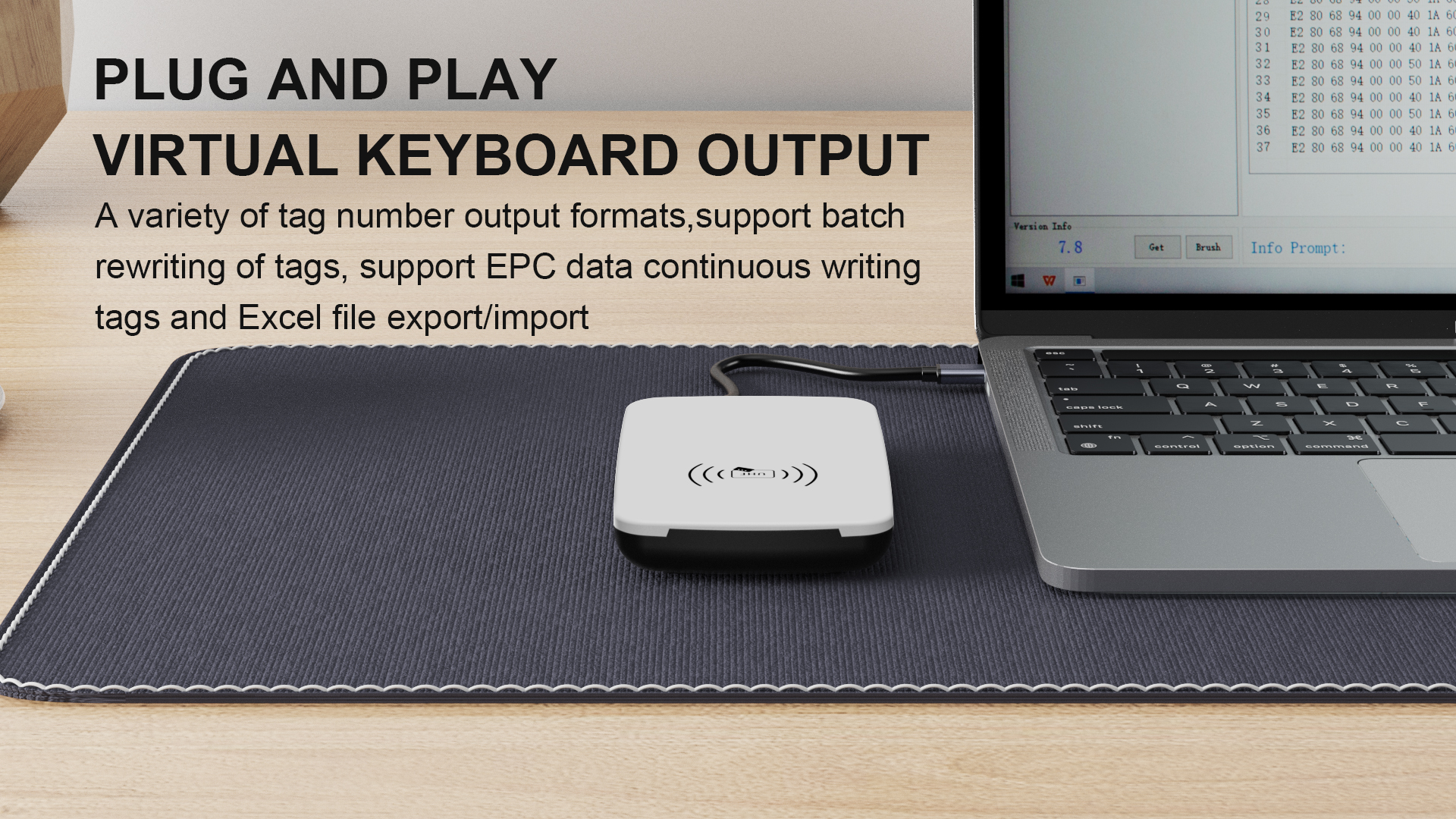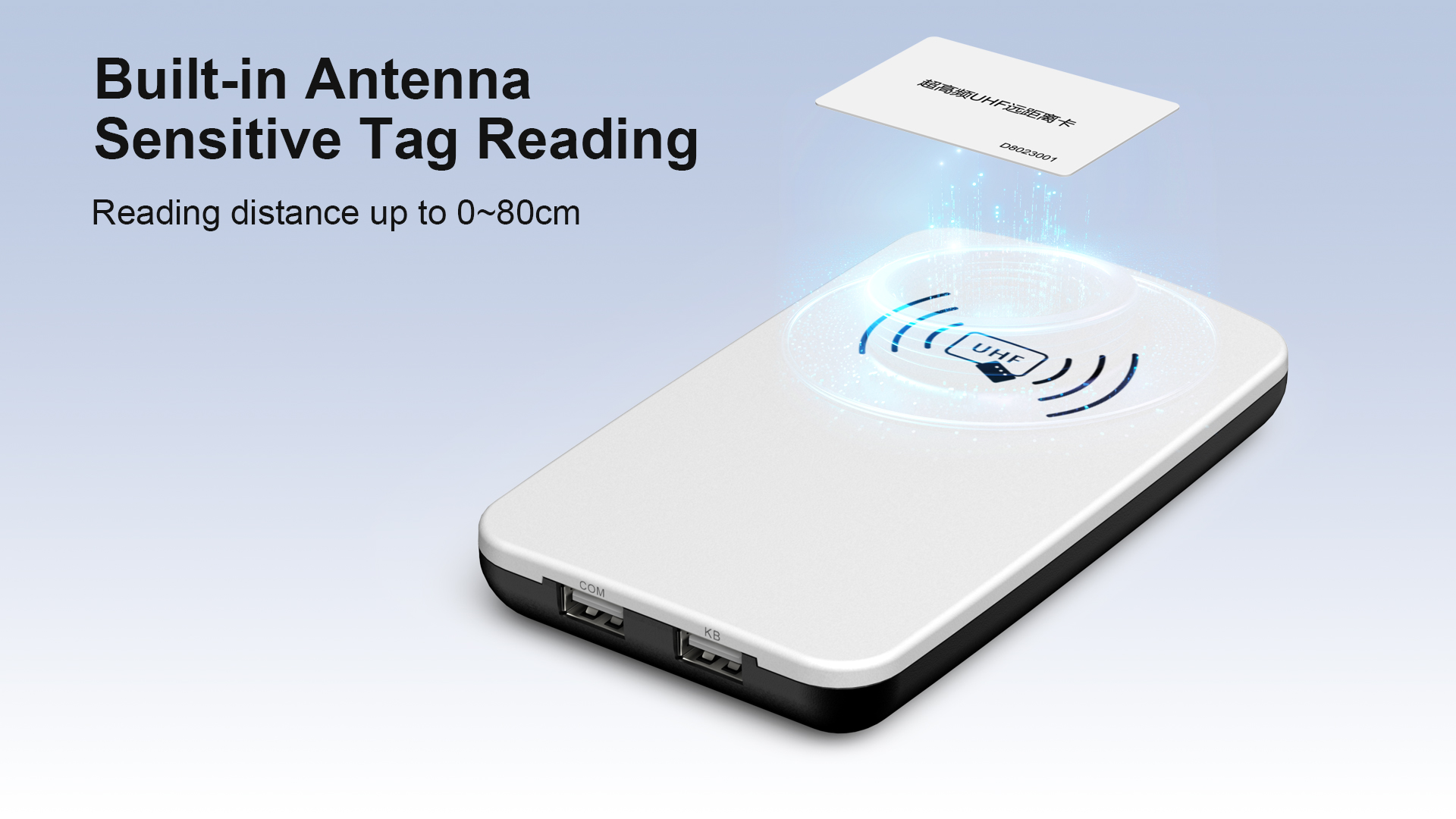 قارئ/كاتب RFID مكتبي يعمل بتقنية UHF بمنفذ USB، نطاق 0-80 سم، معيار ISO18000-6C