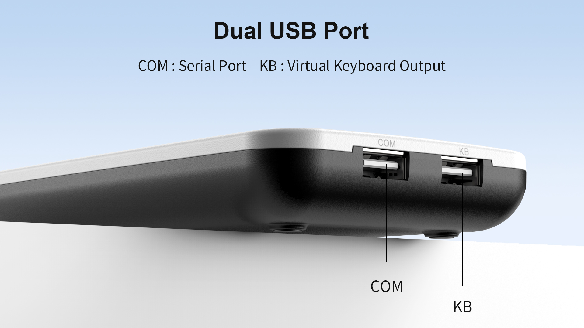 1. منفذ محاكاة لوحة المفاتيح [KB] للتوصيل والتشغيل 2- منفذ USB إلى منفذ تسلسلي [COM] | ||||