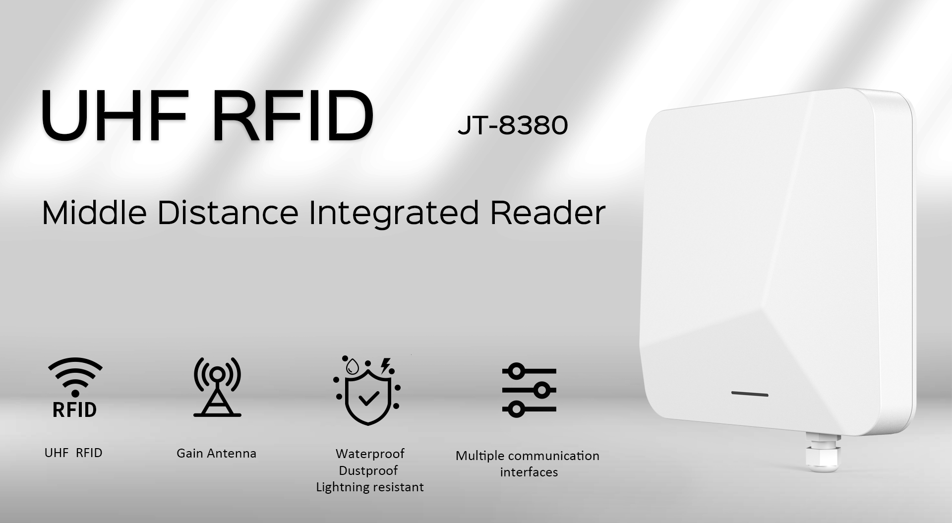 قارئ JT-8380 متوسط المدى بتقنية UHF RFID بتردد 902-928 ميجاهرتز، نطاق 0-6 أمتار